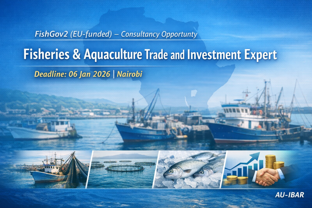 Commencing in January 2021, the FishGov2 Project is now in its fourth year of implementation, with a need for expert support in fish trade and investment. AU-IBAR is seeking the services of a Fisheries and Aquaculture Trade and Investment Consultant to provide technical expertise in trade, marketing, and investment activities aligned with FishGov2 objectives. The expert will work closely with the AU-IBAR and AUDA-NEPAD project teams.