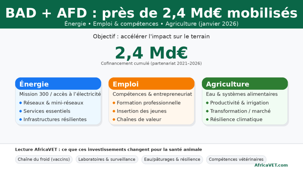 BAD–AFD : près de 2,4 milliards d’euros mobilisés pour l’énergie, l’emploi et l’agriculture, un levier aussi pour la santé animale en Afrique