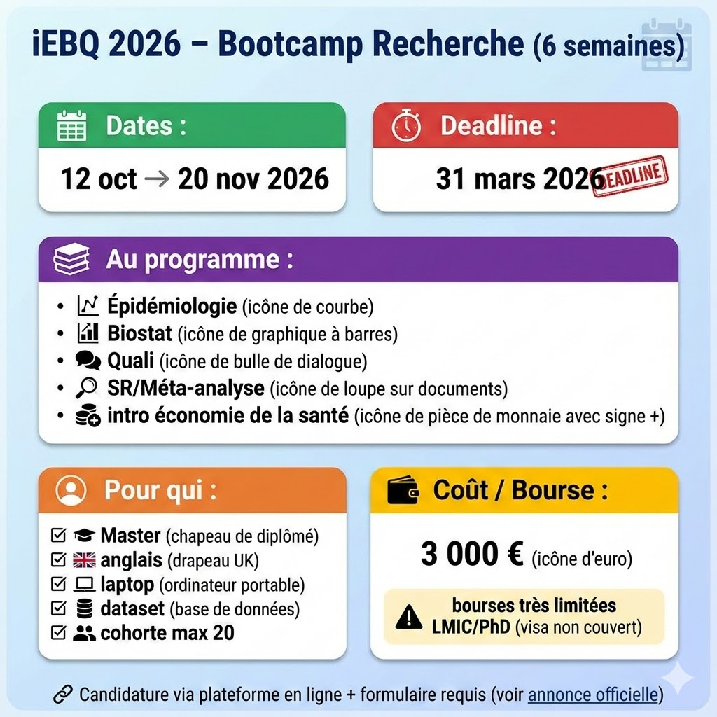 Bourses – iEBQ 2026 : 6 semaines pour muscler vos compétences en épidémiologie, biostatistique et méthodes qualitatives