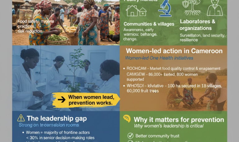 In markets, they monitor food safety, explain hygiene practices, and protect consumers. In villages, they organize community awareness, detect and report risks, and co-design solutions with local actors. In laboratories and civil society organizations, they strengthen capacities, document threats, and support coordinated response. Across Cameroon, women are making One Health real—connecting human health, animal health, […]